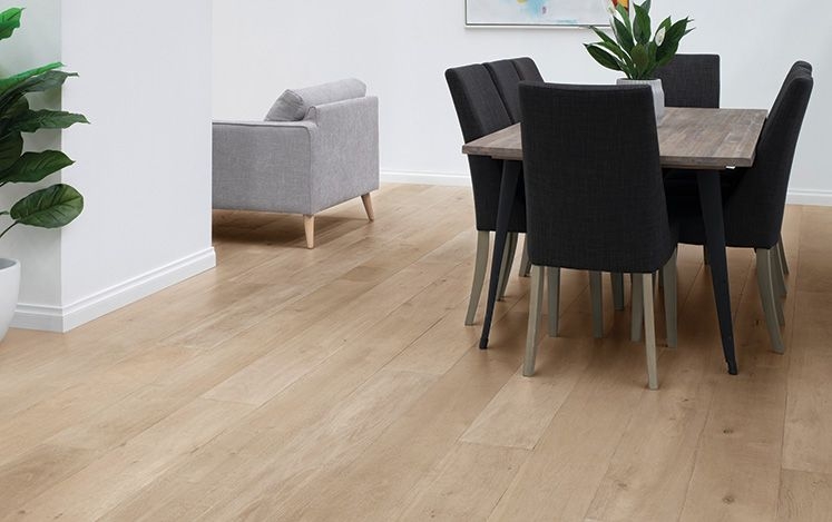 Ghost White is a contemporary, light oak colour that suits most interior styles. The Monarch Collection has a 6mm Oak veneer that has been enhanced with wire brushing and a matte finish for a smooth floor underfoot.